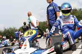 大会2日目の最初のセッションとなる公式練習では、ここ瑞浪をホームコースとする三宅淳詞(8号車)がトップと0.1秒差の2番手のタイムをマーク、小川颯太(30号車)は15番手となった。続くタイムトライアルは全車をふたつのグループに分けて行われたのだが、走行すればするほどタイヤのゴムが路面に乗り過ぎてタイムをロスするため、第1グループの方が第2グループよりタイムが出やすい傾向が見られた。第1グループに出走した小川は、最後の2周に照準を合わせて走り、狙いどおり好タイムを叩き出して2番手になった。一方、第2グループに出走した三宅はグループ分けの不利もあり、前と僅差のタイムながら9番手に留まった。ふたりはこのポジションから第5戦と第6戦の予選をスタートする。